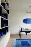 Similarly, the study space became a testament to our collaboration with a ceramic artist, a resin artist, and a graphic designer. We designed site-specific pieces in a particular shade of blue, introducing it through the carpet and sofa as well. This cohesive approach permeated the entire home, with each space being meticulously curated to offer a distinct and unparalleled experience of the fusion between art and design.