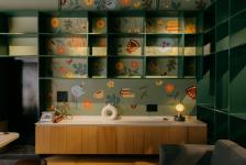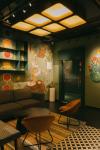 Green is the color of tea and that has been amply emphasized throughout the spaces using a combination of shades of green, textures and lighting. It is complimented with the warmth of ash veneers, and a hint of orange and yellow. The murals running along most of the western wall depict elements and activities related to tea. The flooring and the ceiling have been kept dark to frame an enclosure with the intended colors and their reflections on the cabin glazing with a combination of custom-made plywood lighting fixtures.