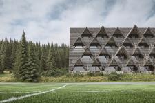 Hotel Natura is one of the visitors' first points of contact with the sports and tourist resort Rogla. It was built as the final among a number of hotels and represents perhaps the biggest visual departure from the recognisable expression of the previous interventions, which referenced the local, rurally developed landscape to a greater degree. Hotel Natura was designed as Rogla's highest-rated hotel, but was never fully realised. Much of the envisaged accommodation remained unbuilt, and the investor now intends to modify its typology and extend the hotel with multi-purpose common areas and a recreational swimming pool.