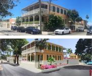 Phase 2 – Erect a new 1410 square foot per floor (2 story) 8 room hotel building addition. (4) rooms will be ADA compliant on the ground floor and the building will have a portico and covered gallery facing Strand Street and covered galleries facing the Caribbean Sea. This new infill structure brings the total hotel rooms to 23 for the site. A boardwalk has been built on the western seaside of the property which runs from Queen Cross Street to (2) openings into the hotel along the western boundary of the site.