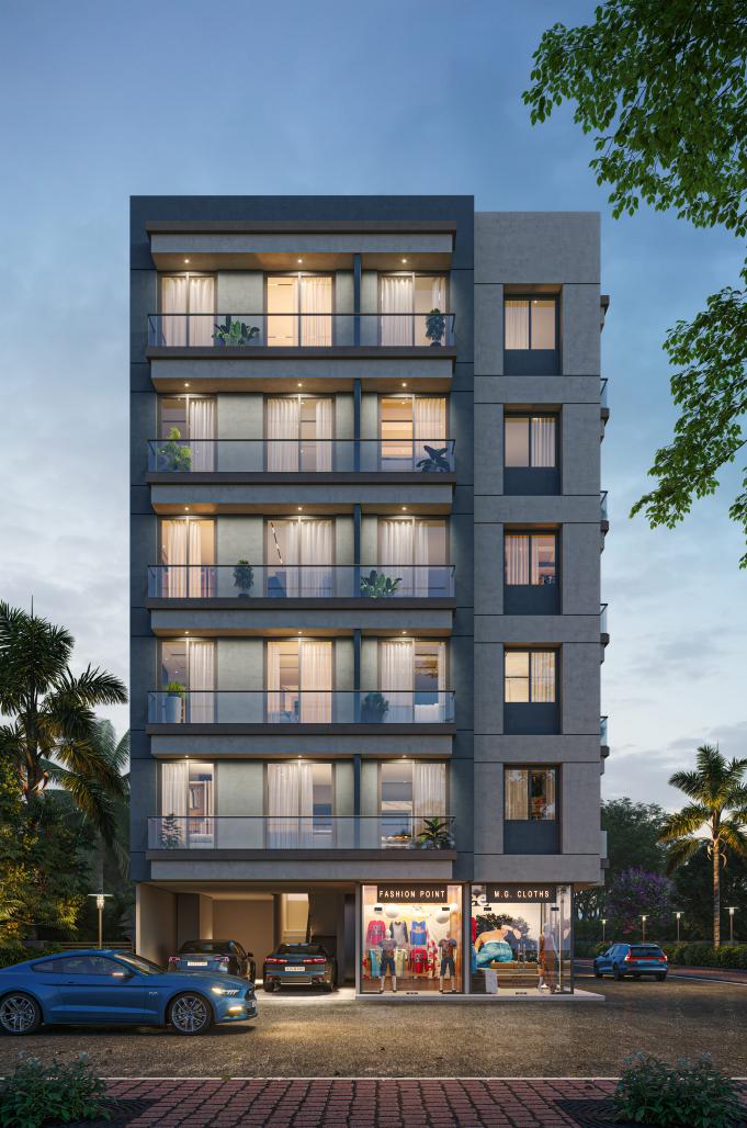 Five-plus-ground floor project where the ground floor is used for shops and the other five floors of the building is used for residential use.