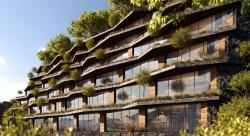 The architectural concept of this residential building comes as a necessity to adapt to the rocky terrain following the natural contour of the site, becoming part of the hill. Because of the slope of the site, the volume is divided into two parts, where the upper part is designed as a compact volume and the lower part as terraced levels with curved balconies, merging with the rocky terrain of the surrounding nature. It not only creates more usable space but also provides natural light throughout the apartments. It offers a unique and personalized living experience by blending indoor and outdoor spaces seamlessly while maintaining privacy. The organic curves of these balconies not only add an aesthetically pleasing aspect to the overall structure but also bring a sense of fluidity and elegance to the space. Such exquisite design choices make architecture more accessible to nature and connect the gap between built and natural environments. It also creates an unforgettable visual impact, elevating any living experience into a luxurious one. The entrances of the two volumes are separated along two different streets according to the slope. Visually, the facades of the two volumes are also designed as separate, using different materials and color palettes. Fostering a connection with nature through residential architecture is a bold statement, as it embodies an eco-conscious lifestyle while providing unmatched comfort and relaxation.