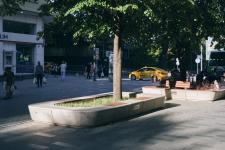 First of all, the high walkway, which is between two old vehicle roads, creates an obstacle for crossings, and has been integrated with the sidewalks by revealing the area. The constructions around the protected plane trees were replaced with permeable concrete to allow their roots to absorb water. In addition, the newly designed benches were designed to surround these trees and protect them. These seats allow visitors to spend quality time in the center of the public space along the street, under the shadow of the plane trees by listening to the street sound.