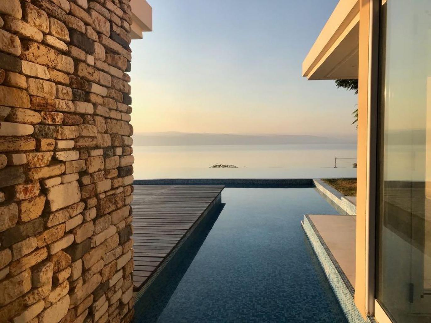 A residential private villa overlooking the lowest point on earth located on top of the dead sea mountains in Jordan. The villa accommodates five family members in a duplex suite, open kitchen and family room that can be enlarged to the external terrace from one side and leads to tropical fruit garden from the opposite side. In addition to, a master suite separated by a wooden bridge, floating wooden deck in a reflective pool, jacuzzi and massive infinity pool that overlooks the sea.