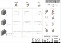 Given the program of creating a new and renewed area for cultural development, within the city of Beijing, the concept brings forward the idea of individualizing every kind of art and every kind of artist, whatever their craft. Thus, the buildings that are exactly 500 cubic metres in space are slightly separated between them. An objective approach to a bigger urban scheme is also the fact that this separation creates visual and light connections that allow the public to briefly interact with the dwelling of the artists and their work.