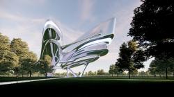 The atrium where the three living bodies are about to intersect forms a fantastic place of pilgrimage for drama, and also becomes the main entrance of the entire theatre city, just like the transportation system of the central nervous system of the living body connects the main body in all dimensions.