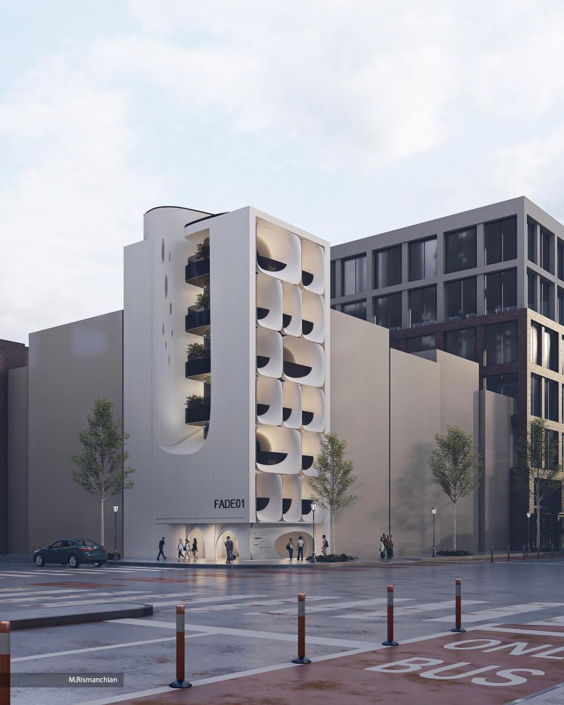 The main concept of this project is integration and a sense of fluidity, which is formed from the outer body and continues to the inside.The nature of this project is made of only one unique form, the concrete forms that are placed in the facade.These thick and pure walls are made from the vertical arrangement of Basalt stone ingots that form the project from the entrance to the roof garden and Project skyline, and eventually the whole body. These walls are cut in specific borders of the combination of the facade layers, architectural plan, and structural construction. Meanwhile, the structural elements and facade columns are hidden inside these walls. Between this separated facade, the natural light of interior spaces and appropriate connection with the exterior scene is materialized. Finally, with the extension of these walls into the depth of the project, space arrangement and Indoor arenas are shaped. In this project, the balcony is the specific point of the exterior body and the interior space. In other words, the separation of eastern and western bedrooms is no longer limited to just the solid walls of a traditional balcony. This significant balcony, like a glass box, provides suitable light and view for bedrooms and family living rooms. Moreover, a shrub is located in its center in order to convey a distinctive feeling. In the extension of the north balcony and in the middle axis of the house, the family living room and kitchen are placed. The function and proportion of these spaces are in coordination with the Pieces of basalt walls from the other arenas of the plan. Moreover, the effects of these walls can be seen in public spaces such as the lobby, parking, backyard, staircase, and roof garden. Besides, in each space nature and the independence of materials are preserved. In the interior spaces, furniture, materials of closets, and cabinets are designed of Elm wood to create a warm atmosphere alongside the cold and neutral color of Basalt stone.