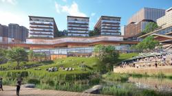 An adaptive and efficient layout is created to fulfil the demand for office space in the emerging industries. The design balances the relationship between the local landscape and architecture, offering a range of ‘smart and interactive infrastructures’ including technology hubs, public spaces and social communities, and supporting a diverse range of enterprises, from start-ups to established headquarters.