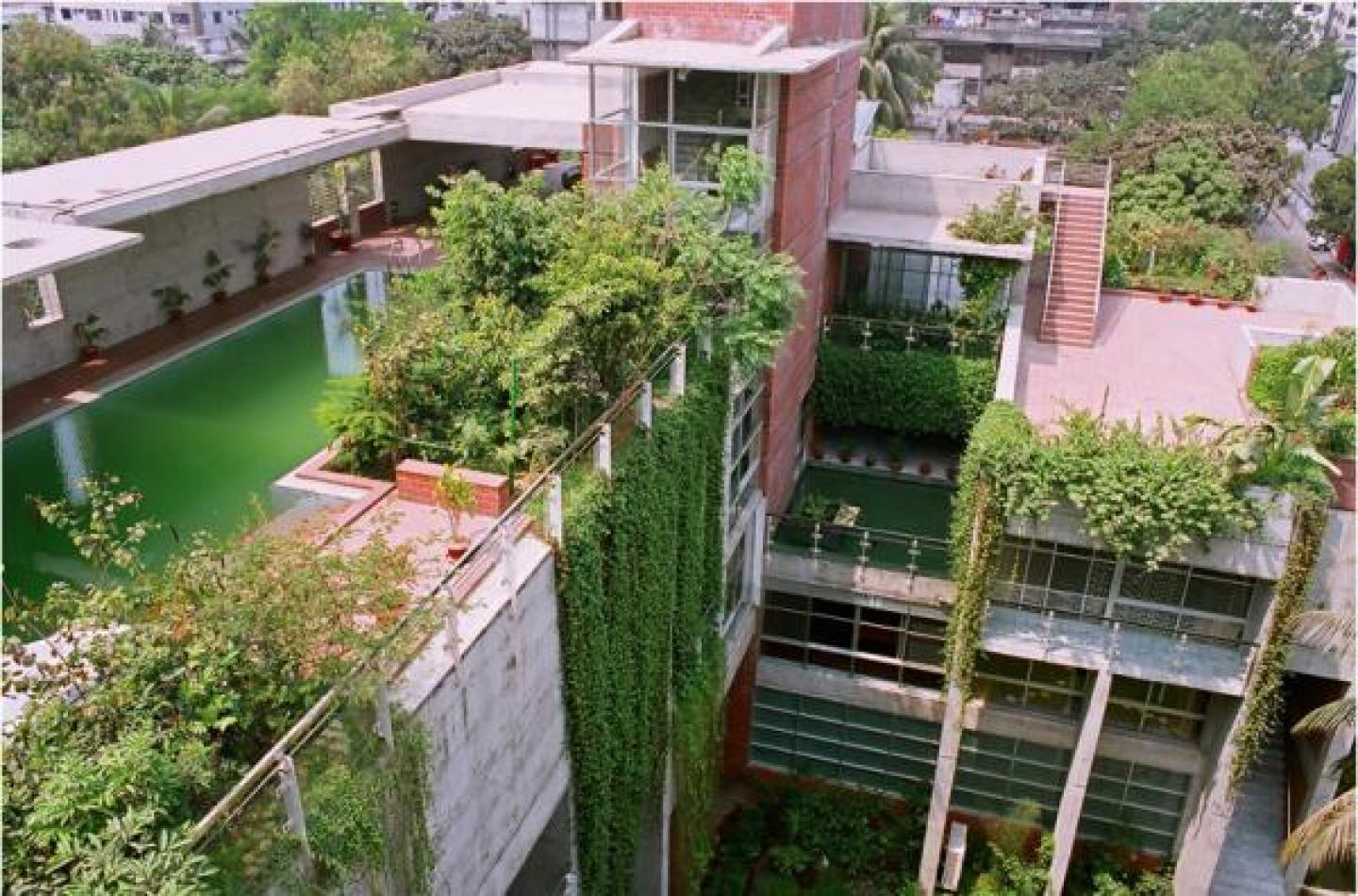 The courtyard for privacy & connectivity, the water layering the Deltaic ambience. In the photographs you can see the swimming pool, ghat and garden for big trees at level five. The foral green and sound of water away from the ground - the library & garden at level 3. the entry atrium & the family lounge.