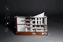 Lastly, the primary strategy to organize books is to integrate shelves within the curved walls to ensure users experience the maximum space flow and enhance the sinuous architectural aesthetic.