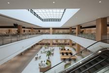 The Administrative Service Center is a five-story building. Its first and second floors are administrative halls with 200 counters, in which municipal services and corporate services are organized into two atriums. A section of continuous colonnades is planned on one side of the ground floor, reflecting the design elements of the traditional Lingnan arcades.