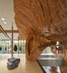 The design team hunted for fallen dead trees in the forest and transformed them into decorative columns by slicing and encasing them in glass. The tree rings on these columns serve as a visual testament to the trials and tribulations endured by the trees during their growth in nature – a perseverance that resonates with the spirit of ARC'TERYX, which aims to break through limits and keep reaching upwards.