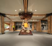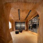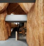 The space strives to foster a harmonious connection between humanity and nature and interpret the spirit of the outdoors through innovative artistic expression. Positioned in an elevated corner of the store, a colossal dead tree's root extends vertically along a transparent glass facade, seamlessly blending into the store's setting. The project emphasizes the sustainability of materials. On a suspended staircase platform, the design team introduced a 2-meter-high pinecone art installation crafted from rust boards recycled from factory waste. This installation harmonizes with the upward-reaching large tree root, cultivating a profound artistic ambiance.