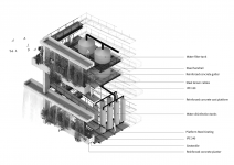 This system has the capacity to function as a sponge independent of runoff and micro-watersheds, since most of them are channeled in the city. Its main characteristic is that it is a rhizomatic system that filters the city's wastewater. Wastewater is collected from the buildings and transported to the filters inside the walls. Once the water is treated and cleaned part of it is released into the wetland and the other part is taken to the tower where it is purified and returned to the city.