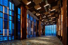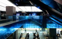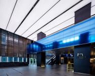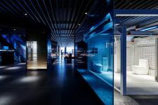 Our objective of this project was “to create a place reminiscent of abundant everyday-life experiences produced by clear water. "The “light from water reflecting the city" at the entrance gives an impression of TOTO’s corporate identity color, blue.