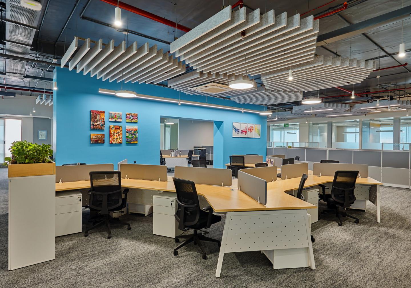 Their existing office was old and compartmentalised with lot of cabins and cubicles and devoid of any cheerful colours.