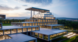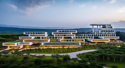 The project is located in Kigali, the capital of Rwanda, the fastest developing country in East Africa. We designed different concepts for our Client's new university project and presented different possibilities to our customer. This project is the second concept we designed. The project land is an area of 14 000 square meters and has a slope of up to 20 meters. In order to cope with this slope, we developed a design with masses that spread over the land and rise according to the slope. Instead of a single mass sitting on the land, we designed masses that overlap each other. We created an artificial hill with these masses. Rwanda, which means hill country, topographically consists of thousands of hill elevations. With this approach, we have become naturally closer to the natural environment in this land. At the same time, instead of crushing the existing city fabric proportionally with a single large mass in an environment where there are small proportions of buildings, we respected the city fabric with a more fragmented design. We designed the administration section in this area so that it could see the entire campus by elevating the building towards the farthest corner. This rise at one point also added dynamism to the structure. In order to minimize excavation, we elevated the masses on columns so that they would not touch the land, and we achieved a design that would minimize the construction cost. We turned the entire campus into a living city piece by establishing its relationship with the ground in a way that provides easy access from different elevations to different elevations.