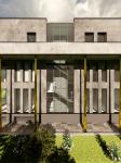 The subject was the design of the facade and a part of the lobby space for the Hajj o Ziarat building located in Kashan City. In the middle of the construction process, this request was raised by the client, and this limited and challenged the design work. An effort was made to consider a pure cubic form for the building and also to emphasize the regularity of the building form by considering the well-organized cubic columns around the building, especially in the entrance part. In the entrance section, two rows of columns were designed to distinguish the entrance axis in that wall from other walls.