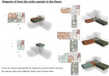 This project is designed as a case study for a master's thesis titled " Driving affordable housing design patterns for middle income groups". This thesis is looking for architectural solutions to solve the problem of middle-class housing in big cities and the designer's role in reducing the price and optimizing the housing. It is assumed that due to the change in the lifestyle, culture and needs of today's societies compared to the past, housing needs new models that are appropriate to these changes. Additionally, by revising the design method, the need to build low-quality and outlying houses under the title of supportive housing can be avoided and a space with dignity and quality and suitable location can be provided to the middle class (6th-9th deciles). In this research, after examining the definitions of residence, housing and its quantitative and qualitative dimensions, the demographics of housing and the study of the middle class are discussed. And after that, the history of social and supportive housing in Iran and the world has been reviewed. In the experiences section, 9 successful countries in the field of providing supportive housing were studied and their experiences were analyzed and at the end 13 architectural solutions were extracted (which can be seen in the conceptual framework of the research). In the end, some of the presented solutions have been used in the design of a case example, which includes: cohousing as the first priority along with, flexibility, downsizing, work and living and proper use of materials. The designed complex is a combination of apartment units with different areas with the aim of creating a mixed-income housing that has a significant impact on social sustainability.