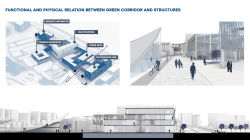 Due to the underground placement of the rails being ingrained in the urban memory and shaping our design as the first step of the design process, a parametric roof design was created using data from the rails and the registered station cover. This design and parameters were continued to conceptualize a multifunctional social structure and experience flow along the green corridor. To enhance design continuity and the inviting nature of spaces, the parametric design, starting from the rails, was integrated into the entrance structure group and pavilion. Subsequently, this design transformed into a facade element, losing density along the west-east axis, and integrating into all buildings.