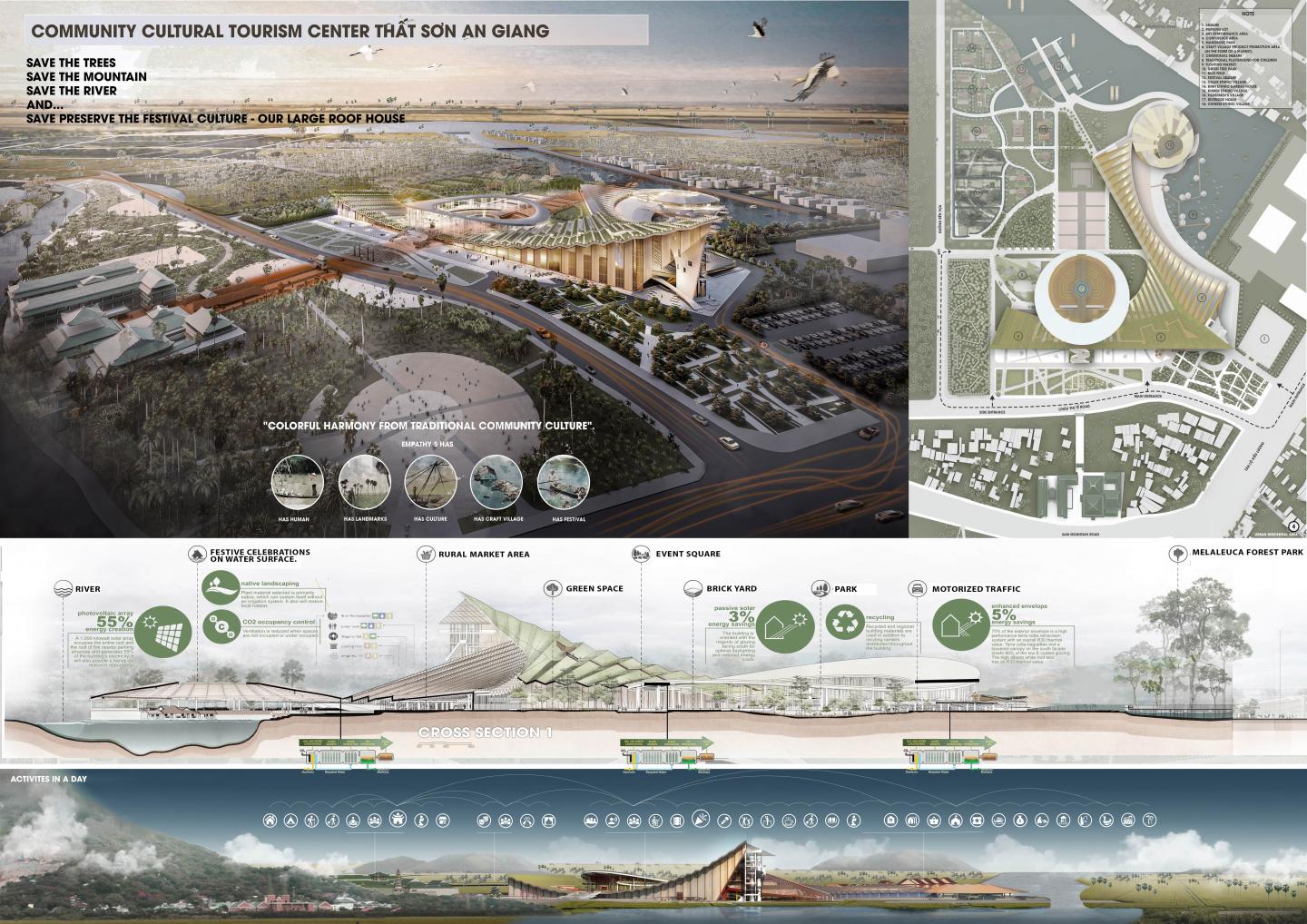 The cultural center's architecture is inspired by the natural scenery of the tropical rain zone of That Son region