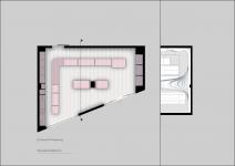 Pair Three is the saturated and the pure: The color saturation of the upper part with the color neutrality of the lower part of the space. The upper to intensify the identity and the lower to provide a monochromatic canvas for the display of the colorful products.