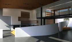 The Event/Home evolved through the desire to unify two divergent uses, that of an event space for fundraising purposes as well as a private living space with a diverse program, within an existing home. The Event/Home aims to merge a large volume with an intimate program by conceptually intersecting the two with a system of space-defining elements. To this end, a series of elevated platforms apply hierarchy and division to the uses. A curvilinear element then unifies the space by threading the discrete program areas together. This sloping white wall also serves to compress the entry and direct your gaze to the view beyond while the steel-framed mezzanine and wood ceiling refine the space’s proportions. The result is a cohesive space with varying degrees of privacy, specificity, perception and use.