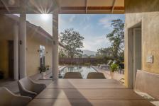 Raw, earthy and rooted in nature, the Sienna House is a weekend home that draws inspiration from its surrounding. Located 90 km from Mumbai in Khopoli, Maharashtra, the house is perched on a tableland, 1200 ft above sea level, against the backdrop of the Western Ghats. One of the first houses in the upcoming Serenity Villas and Farms development, this house by SAGI Architects is designed to set the architectural character for the rest of the plots. The visual and spatial characteristics of the house come together to create a sense of openness and transparency that allow its inhabitants to connect with nature.