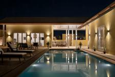 A driveway from the road on the south leads to the entrance of the home, which extends into an expansive 375 sq. ft-pavilion. On the east-west axis of the house are the most intimate spaces – the swimming pool and the deck that tie the rest of the areas together. Flanked by the living room, bedrooms and kitchen – the pavilion houses the dining area and overlooks the pool which doubles as a space for parties and private music events. The staff quarters are located outside the inner plot boundary, ensuring privacy yet proximity to the house.