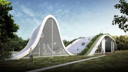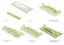 Designed within a large residential project on a narrow triangular wedge shaped garden, the Quillion Club houses a swimming pool, a gymnasium, a community room & a meditation space. Since the plot was extremely small & narrow, an undulating roof with a garden covers the pool area & the gym. Accessible as a usable space with stepped platforms the roof merges with the garden & provides additional open space that facilitates community activities.