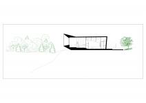 The glass roof and walls blend in with the natural and green surroundings of the area, enhancing the sensory experience of rainfall. In addition to all these features, we also considered the climatic effects and designed the roof to accommodate the area's heavy rainfall with a sloped design and engineered water outlets for reuse.
