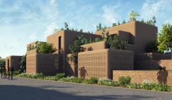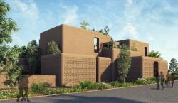 Rammed earth walls, lime plaster, terracotta filler slabs, retaining the existing contours, screens for mitigating heat gain, water recycling, water harvesting & the use of local materials & contract labor will make this project very sustainable & with a minimal carbon footprint.