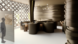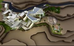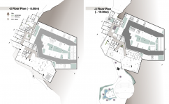 The Centre will be located on a contoured site along the Souda Mountains overlooking the main plaza of Rijal Alma’a; therefore, ideally, visitors enter from the top floor, where they are introduced to the village through the viewing decks, and as they're descending, they get deeper into the cultural journey and learn more about the past since the exhibitions are placed in the bottom floors and buried into the mountain layers to align with the concept of making the invisible visible as heritage is the hidden gem of our present. There are two main circulation paths: cultural and leisure, or educational, in addition to the separate circulation of the hotel for long-stay visitors. Visitors will cross paths; however, they will have different journeys based on their visiting purpose.