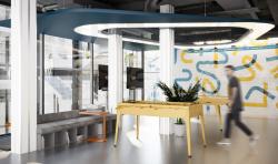 Furthermore, the main goal of renovating the old structure was to minimize waste and create an improved living environment for work purposes. The proposed solution included the renovation of floor beams to create mezzanine floors and increase the height of the first floor, providing a favorable environment for both employees and visitors. Moreover, the design team proposed a combined showroom concept integrated into the working space for employees, rather than separating it in a different space. The office and showroom became a unified space, divided by transparent glass partitions. As a result, not only could visitors admire aluminum artworks in the showroom, but even the office staff could interact with and draw inspiration from the aluminum material.