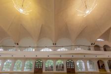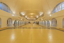The structure through computational geometry, the play of volumes, monumental scale, light, and details of all elements including flooring, door detailing, chandelier, ribs on the roof, jalli patterns in windows, finishes on walls and vaults, come together cohesively to create a spectacular spatial experience. The employment of arches in various forms throughout the structure including detailing in handrails, the profile of openings, and walkways, while speaking a universal language is reminiscent of the rich experience of long-heard royal epics and stories.