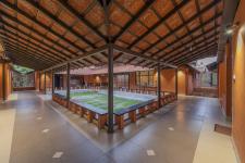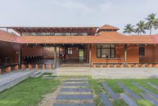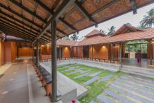 Ayurveda and Architecture are not completely different domains in the analogy of impacts on human minds and dealing with the wholistic welfare of the being. Ayurveda, a traditional science, believes that wellness of human beings lies in the delicate balance of the mind, body and spirit. The methods of treatments in Ayurveda establishes a strong connection with nature, its elements and senses. This project attempts to explore the scope of architecture in creating spaces that enhance and influence the process of healing the mind, body and soul. As per Ayurveda’s text book: All activities are meant for the happiness of all living beings. Such happiness is based on Dharma (Righteousness). If translated architecturally, it means consciousness, appropriateness or contextuality. Located in InamKiliyur village near Kumbakonam, a temple town in Tamilnadu, the site is surrounded by dense vegetation and a variety of animal life and lies in close proximity to river Cauvery. The site extends to 1.2 acres and lush canal passes through that. There were few on-site features like trees, were retained. The plethora of existing cultural landscapes and the rich spatial narratives of the vernacular typologies of the fertile Cauvery delta region were the first insights towards the design. The inherent slowness and the lush lay of the land abundantly blessed by nature were added bonuses. The articulation and architectural Grammer at Anjaneyam is born out of a tool kit of associational elements and experiential aspects and materiality born out of the land. A sense of familiarity and belonging is created at the very first sight reflecting traditional architectural elements of the region in humane scale. The warm and cozy built space, and the vibrance of nature brought in through the wide courtyard, brings about the right balance of openness and closeness, light and dark, reminiscing our own familiar houses.