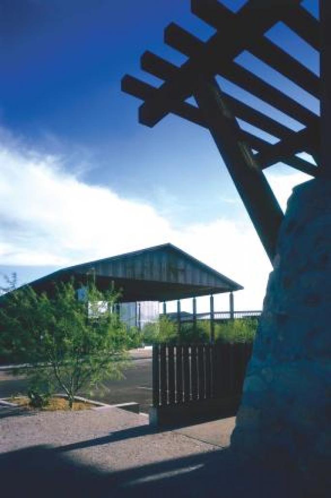 Building O forms part of an urban plan within Market Street. The approach is to craft organic, rural forms, which articulate transparency and movement within. The key concept is to engage an urban “event” space. The sharp edge of the two-story glass wall within, the rusted corrugated steel gable roof, emphasize space and movement. The office users have an enriching, daily visual experience to the outside.
