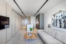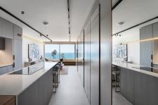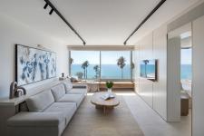 In this Netanya apartment, a relatively small footprint doesn’t compromise the quality of life. Beyond being a mere dwelling, the couple enjoys a dream home that feels expansive and harmonizes with the seascape. Through smart design and clear vision, they have transformed a 60-square-meter apartment into a seafront sanctuary