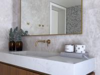 One ingenious solution was found for spaces that traditionally didn’t contribute to the living experience. Utility and laundry rooms were concealed behind a large mirror. This not only maintained the aesthetic appeal of the living spaces but also, when closed, reflected the seascape, creating an illusion of an even more expansive residence.