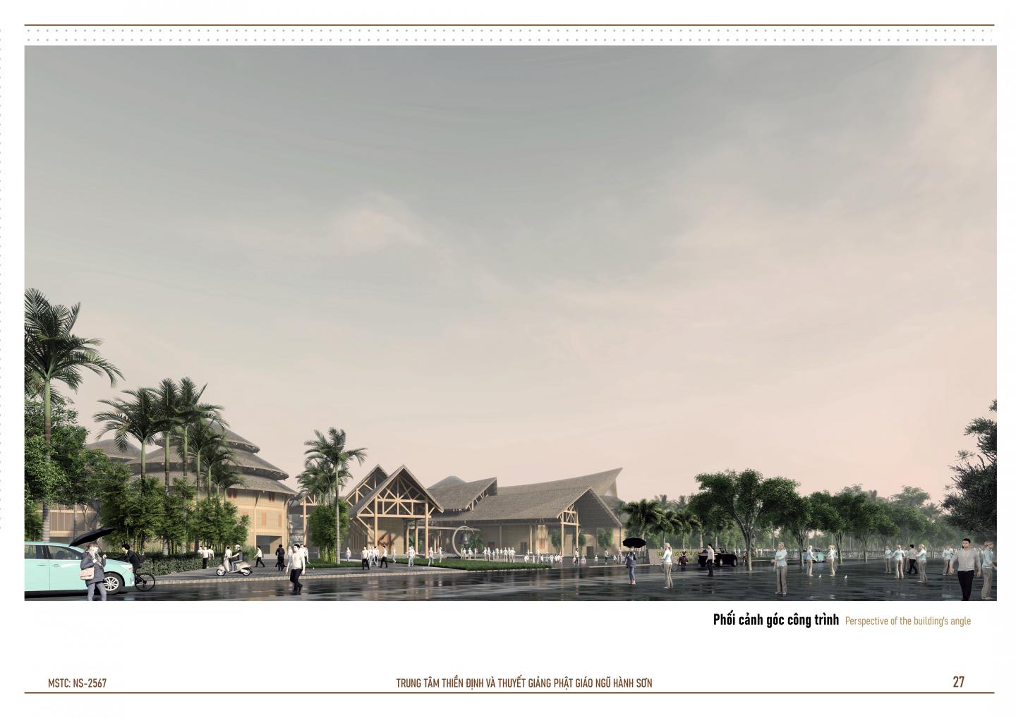 -The space and layout of the building's shapes are light and simple. Formed based on the element "Architecture with Buddhist identity and spirit". The space takes the element "Mindfulness" as its root, because mindfulness is the heart of meditation practice. Regarding the layout, the shapes are taken from the basic typical elements of Buddhism such as "The Four Noble Truths, the Eightfold Path and precepts-concentration-wisdom" to develop.