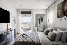 "Within the master bedroom, we utilized part of the intimate balcony of the couple for a well-equipped closet room with sliding wardrobes—also enveloped by a retractable skylight that can be opened up at any moment. That's how it is when the family patriarch is a tech enthusiast—a dedicated lover of gadgets, innovations, all of which we integrated into every corner."