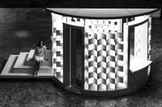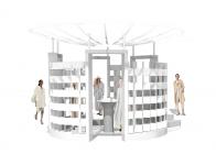 The first polette showroom is a reinterpretation of an adoratorium in shape of a kiosk , that will be open and accesible for the visitors. A very light transparent structure that will have a central fountain where visitors will be able to custom made the glasses.