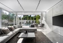 "In the building itself, we used exposed concrete that you can see both outside and inside the house, as part of the idea that the exterior and interior spaces flow into each other," she continues. "We used a mix of materials, with exposed concrete and white walls, both inside and outside the house. The exposed concrete is modern, but we treated it with delicate and modern touches, not in a brutalist manner."