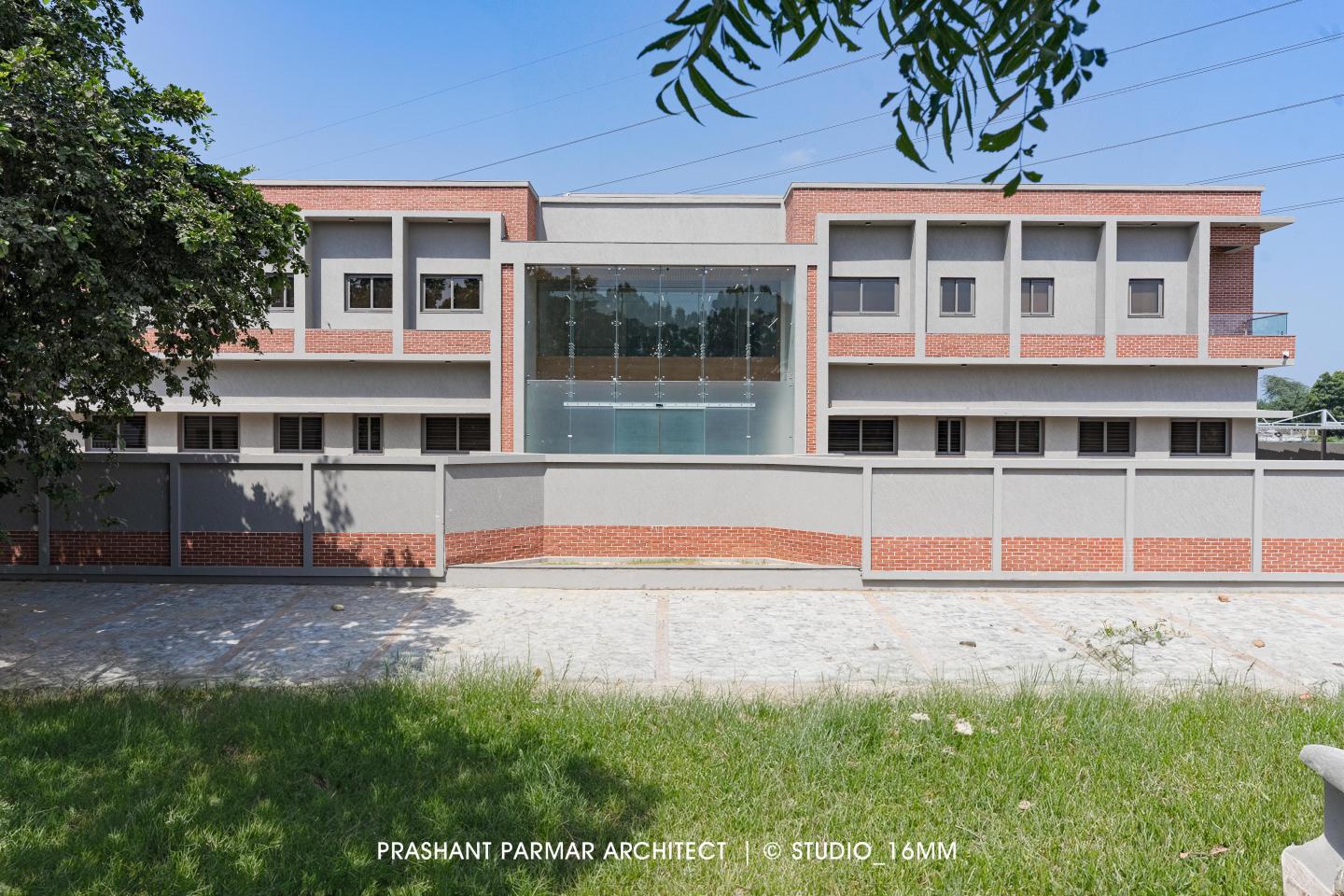 This is an East Facing 35,000 sq ft plot area consisting of independent IT corporate office in SEZ, Gandhinagar providing IT services across the globe. The client is a well-recognized ITpreneur who wished to design the Corporate Headquarter having a all the architectural & Interior designing aspects imbibed in the Office to create a warm, welcoming and friendly environment. The building is wrapped with the exterior materials like Exposed Brick Cladding and Grey Textures that gives a significant identity to the building.