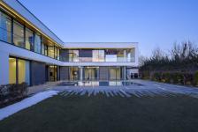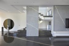 The use of L form and some other considerations, including the use of wide glass surfaces on some fronts, have partially answered the needs of the project. First, this form encloses two faces of the pool, including the south facade, which is the closest neighboring block. The second advantage of this form is that it is divided into three sections (joint and two arms), which places the vertical communication, entrance, and dividing space in the joint section, each arm is also On the ground floor and the first floor, they have their unique features and functions, especially in the northern arms of the first floor, next to the bedrooms, a semi-open space with direct access to the swimming pool has been considered, which no longer needs people to go to the yard or swimming pool. Pass through the reception area (ground floor).