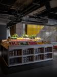 The exposed roof and a large amount of laid silver scaffolding are used throughout the space, eliminating all decorative embellishments with a rough and primitive feeling. The return to the origin of truth and simplicity contrasts with the source of Tongrentang's medicinal and dietary culture.