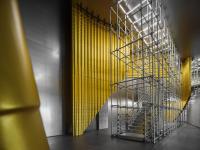 Moving from the second floor to the third floor along the stairs, the grand palace walls, glazed tiles, the sunset of the imperial city, and the structure's bare and bold skeleton flash back and overlap. The imprints of history and the endless distant points in the future become two points on the folded ribbon of time. At this moment, in the same universe intersection, Tongrentang's long-standing brand culture and the bold imagination of the boundless future are vividly displayed here.