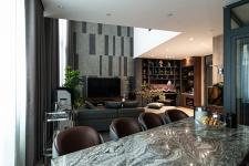 In conclusion, this residential project successfully navigated the challenges posed by the unique land shape, emphasizing innovative design solutions, efficient space utilization, and harmonious integration of materials to create a luxurious and distinctive living space.