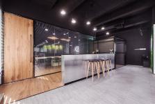 One of the most iconic features of the office is the bold diagonal metal tunnel at the entrance. This unique feature serves as a filter between the reception and the open working space, and also pierces through the meeting room to generate a buffer element with its integrated slanted pantry counter. It becomes an instant landmark for the office and sets the tone for the rest of the space.