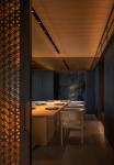 The ultimate goal of design is to connect human and nature. The courtyard forms a separate world at SUSHI ZEN. Along the winding wooden walkways on the roof, guests can arrive at the sunken courtyards on the four sides. They are surrounded by maple and bamboo trees, and interspersed with irregular flagstone paths. Guests can have drinks heated with fire here.
